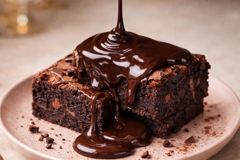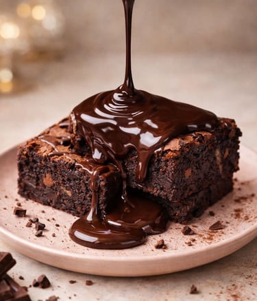 Brownie com calda cremosa que parece proibido… mas trabalha a favor do seu resultado